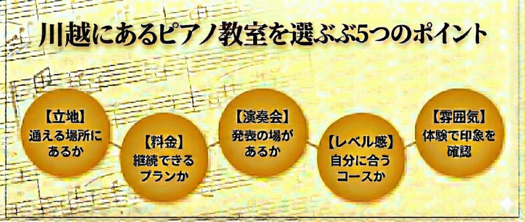 ここまでピアノ教室の選び方から川越市のおすすめピアノ教室を紹介してきました。