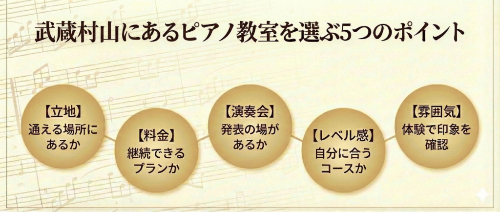 ここからは武蔵村山でおすすめのピアノ教室について紹介していきます。